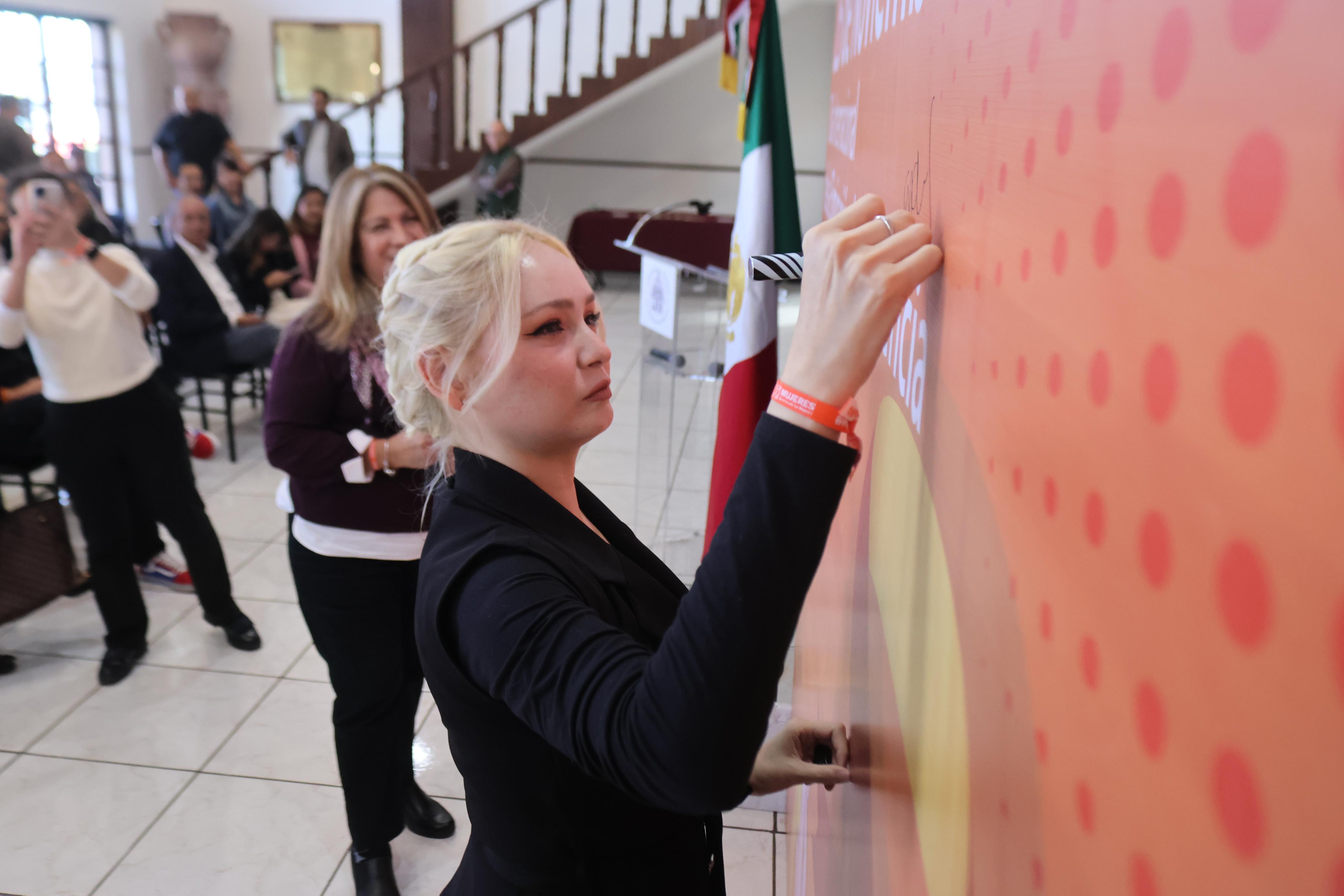 Parte de estas actividades fue la suscripción de compromisos y mensajes firmados por las y los colaboradores del Congreso para expresar su rechazo y cero tolerancia a la violencia contra las mujeres y las niñas.