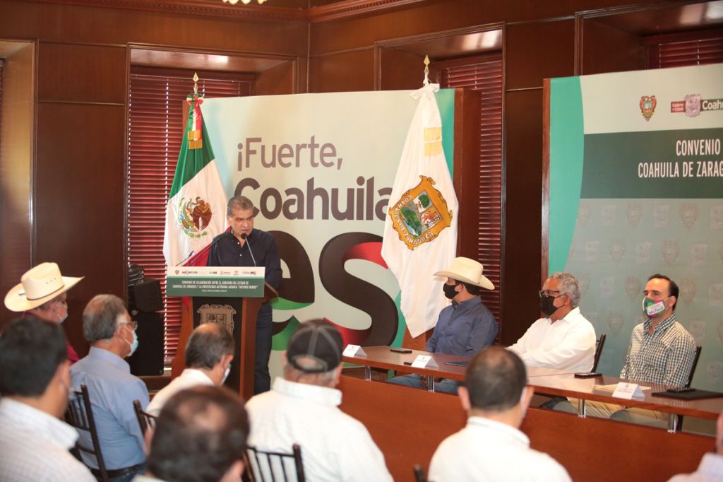 Saltillo, Coahuila de Zaragoza; a 29 de Junio de 2021.- El Gobierno del Estado y la Universidad Autónoma Agraria Antonio Narro firmaron un convenio marco de colaboración en materia de investigación, transferencia de tecnología y proyectos especiales, evento que encabezó el gobernador Miguel Ángel Riquelme Solís junto a Mario Ernesto Vázquez Badillo, Rector de esta institución.
