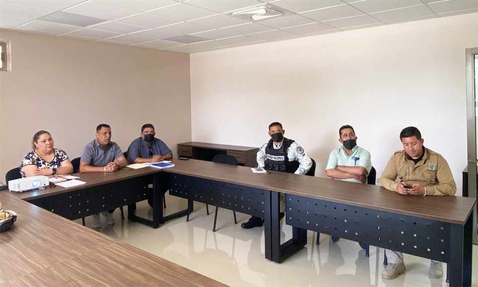 En representación del alcalde Mario González, presidió la reunión de trabajo el Secretario del Ayuntamiento Manuel de Jesús Gaytán Martínez, contando con la participación del director de Seguridad Pública Municipal, Yonathan Vallejo Mares, y de Protección Civil, Oscar Garza.