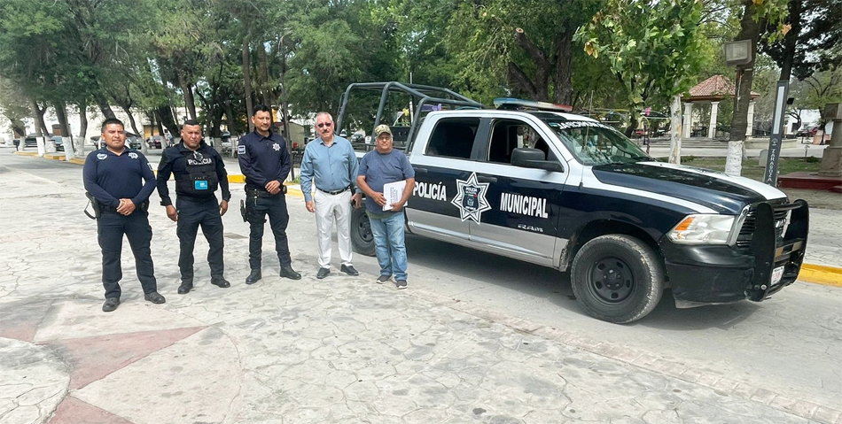 Se sigue reforzando el parque vehicular del departamento de Seguridad Pública, ahora con la entrega oficial de una patrulla recientemente donada por el municipio hermano de Torreón.