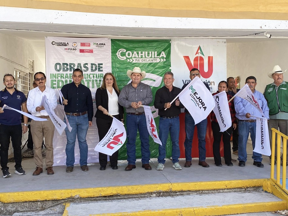 Villa Unión, Coahuila; a 21 de noviembre de 2025.- El alcalde Mario Humberto González Vela, y el subsecretario de Gobierno Antero Alberto Alvarado Saldívar, en representación del Gobernador Manolo Jiménez Salinas, encabezaron el banderazo de arranque a la construcción de una techumbre en la escuela primaria Benito Juárez.Histórico desfile de la Revolución Mexicana en Múzquiz