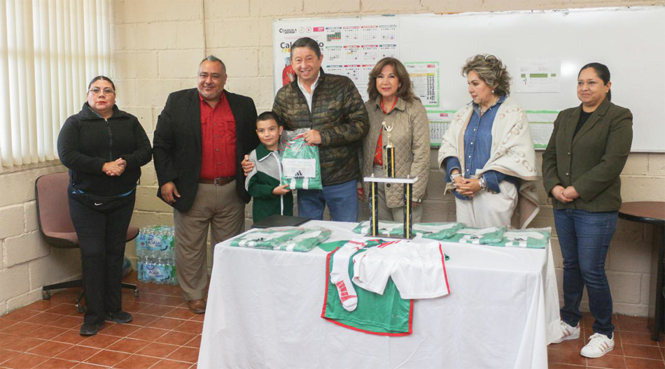 Entregan uniformes a equipo de futbol de la escuela Ignacio Allende