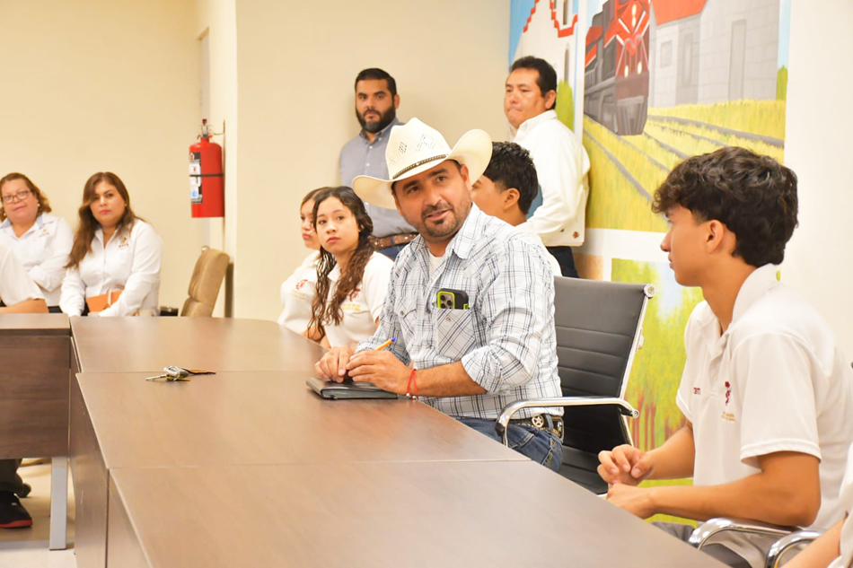 Nava, Coahuila; a 9 de octubre de 2025.- El alcalde Iván Ochoa Rodríguez dio la bienvenida a los alumnos del CBTis 239 que se incorporarán al Ayuntamiento como parte del programa DUAL, una iniciativa que permite a los jóvenes combinar sus estudios con la práctica laboral en distintas dependencias municipales.