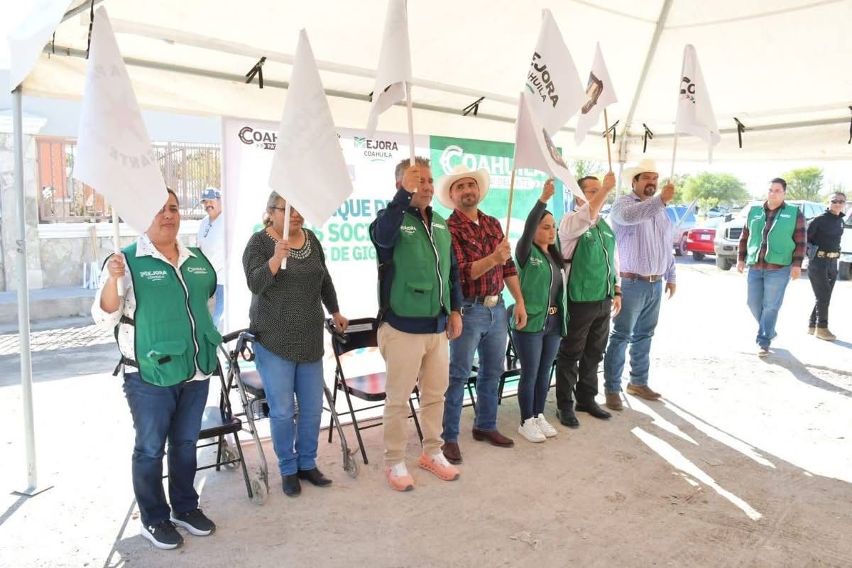 En el presídium estuvieron presentes Mari Carmen De León Medellín, coordinadora regional de Mejora Coahuila en la región Cinco Manantiales; Sofía Elizabeth Sánchez Rivero, beneficiaria del programa; Humberto Rangel Rincón, coordinador municipal de Mejora en Nava; Diana Guardiola Sandoval, coordinadora de zona; y José Leoncio López Osuna, coordinador de Desarrollo Rural en Cinco Manantiales.