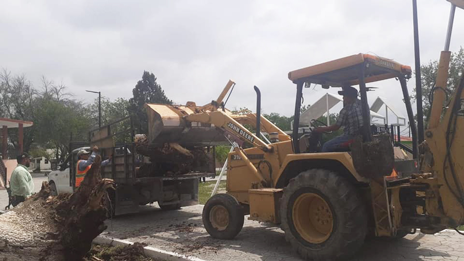 En esta ocasión, los trabajos se centraron en la plaza principal, donde se procedió al retiro de árboles en mal estado o que ya están secos, para que posteriormente se lleven a cabo acciones de reforestación.