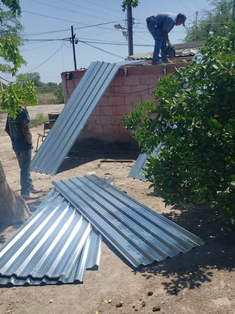 De manera solidaria se apoyó a las familias de las señoras Esperanza Flores y Margarita de la Cruz, en los trabajos de reconstrucción de los techos de sus viviendas, dañados por los fuertes vientos.