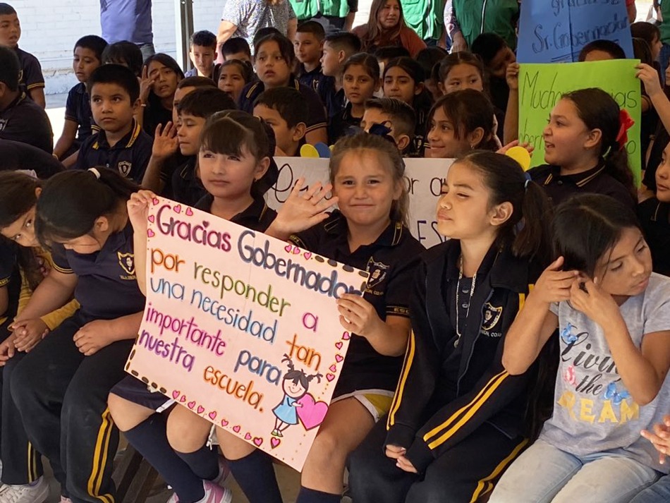 “Agradezco el invaluable apoyo del Gobernador Manolo Jiménez Salinas, ya que gracias a ello Villa Unión tendrá sus tres escuelas primarias del área urbana con techumbre, para la protección del alumnado y personal docente”.