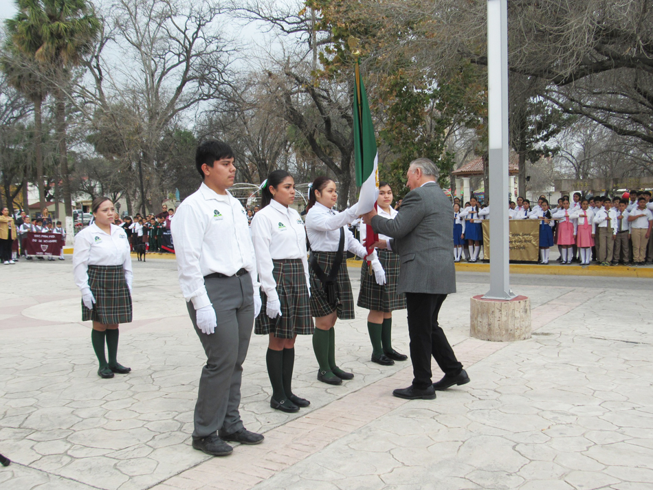 A cargo del acto cívico estuvieron el Instituto Estatal de Educación para Adultos, y el Telebachillerato Comunitario del ejido Tío Pío, rememorando la promulgación de nuestra Carta Magna, primera en la historia en incluir los derechos sociales.