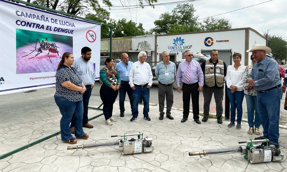 El alcalde Evelio Vara Rivera y autoridades de la Jurisdicción Sanitaria número 2 de la Secretaría de Salud, dieron inicio oficial a la campaña de fumigación contra el mosquito transmisor del dengue.
