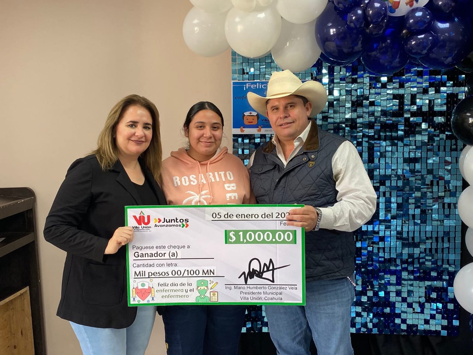 Villa Unión, Coahuila; a 6 de enero de 2026.- El alcalde Mario Humberto González Vela, felicitó a las y los trabajadores del sector salud con motivo del Día de la Enfermera y el Enfermero, en una comida en su honor y entrega de premios en efectivo en reconocimiento a su incansable labor por atender la salud de los pacientes.Impulsa Mario Camarillo el beisbol con entrega de material deportivo