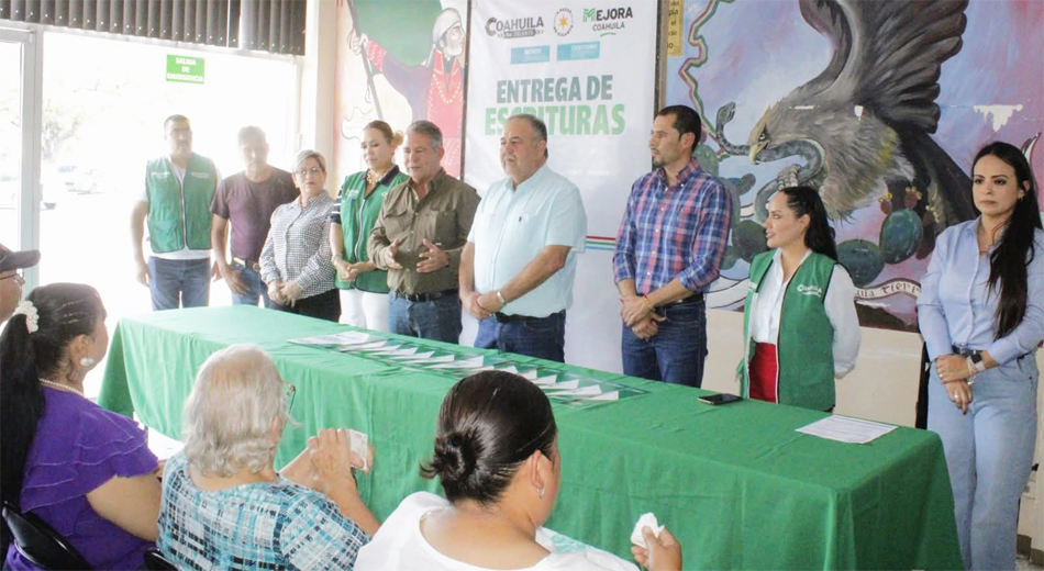 Morelos, Coahuila; a 23 de septiembre de 2025.- El alcalde Mario Alberto Camarillo Zertuche encabezó la entrega de escrituras a 22 familias de la localidad, que de esta manera aseguran la legalidad de su patrimonio con la recepción de sus documentos.