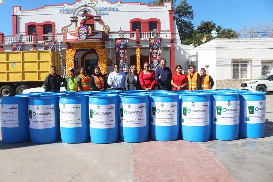 Allende, Coahuila; a 4 de noviembre de 2025.- El alcalde Ricardo Alfonso Treviño Guevara, recibió la donación hecha al municipio de Allende, por parte de la empresa Inamesa, consistente en un lote de tambos para la basura.Fumigan escuelas de Villa Unión contra el mosquito del dengue