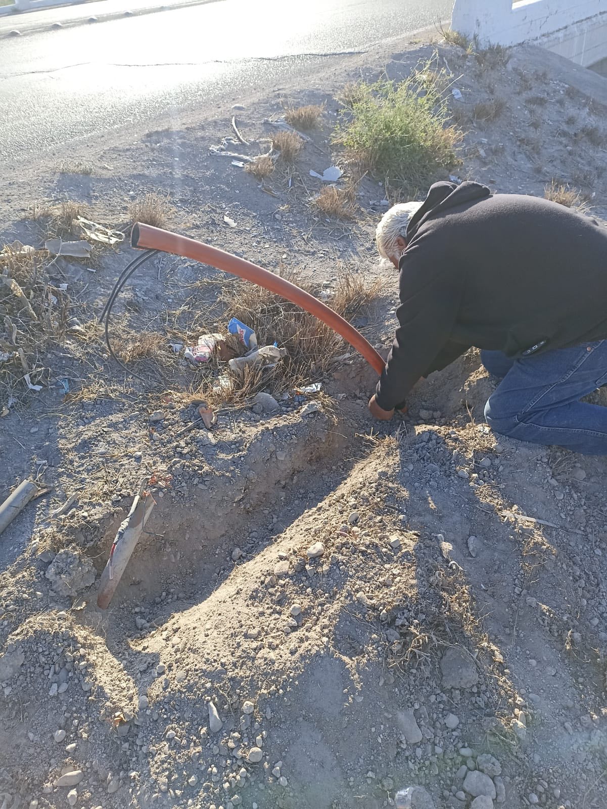 Allende, Coahuila; a 19 de marzo de 2026.- El alcalde Ricardo Alfonso Treviño Guevara, constató los trabajos de reposición de cableado eléctrico que había sido sustraído en el bulevar Norte, a la entrada del municipio.