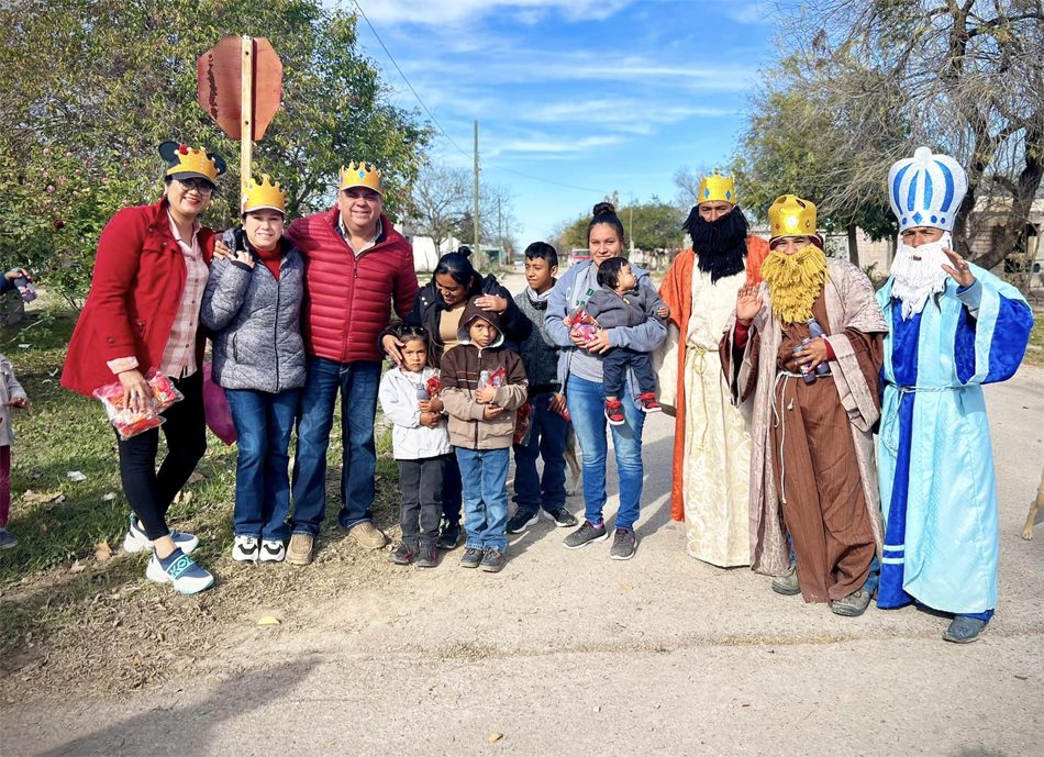 El primero consistió en una caravana que recorrió las calles de la cabecera municipal y del ejido Los Álamos, donde los niños salieron de sus hogares para recibir a los personajes que representaron a los tradicionales Reyes Magos.